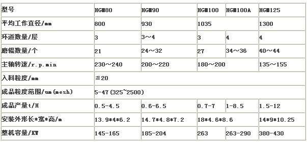 工作時,磨粉機主機電動機通過減速器帶動主軸及轉盤旋轉,轉盤邊緣的輥銷帶動幾十個磨輥在磨環滾道內滾動。